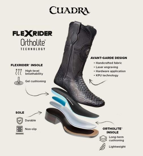 Detailed Design: The shaft features intricate embroidery, a laser-engraved Cuadra logo, and a rubber logo appliqué on the front for added style.