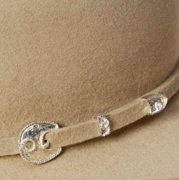 Part of our Buffalo collection, this cowboy hat is made in the USA of high-quality, weather-resistant 4X buffalo felt. Its classic Western profile features a classic cattleman crease, a 4″ brim and a 4 5/8” regular oval crown. Additional details include a leather sweatband, satin lining, and a self-matching hat band with a three-piece silver-toned buckle set, as well as a Stetson hat box.