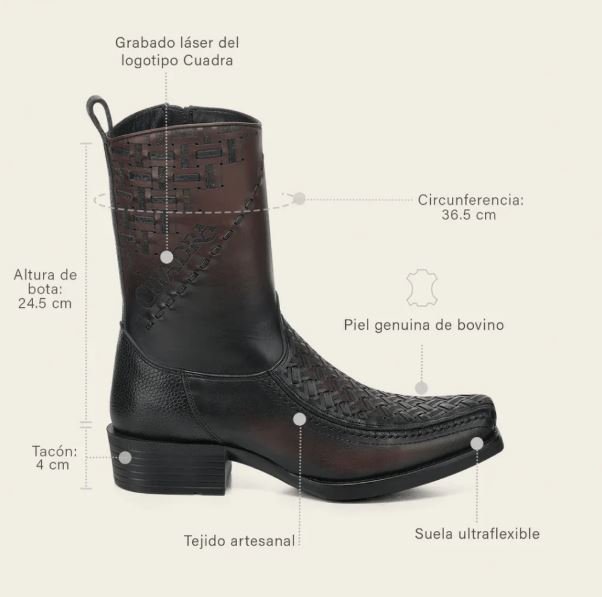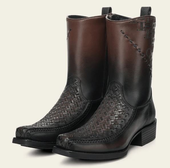 Crafted from genuine leather, these Cuadra men’s ankle boots stand out for their sophisticated woven detailing across the vamp, adding texture, depth, and a distinctive handcrafted look. The dark brown finish features subtle tonal variation that enhances the natural richness of the leather and gives the design a refined, masculine character.