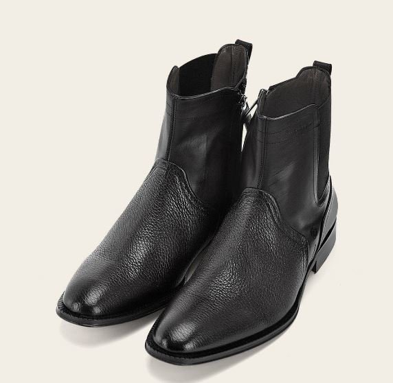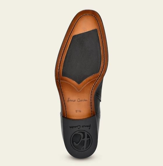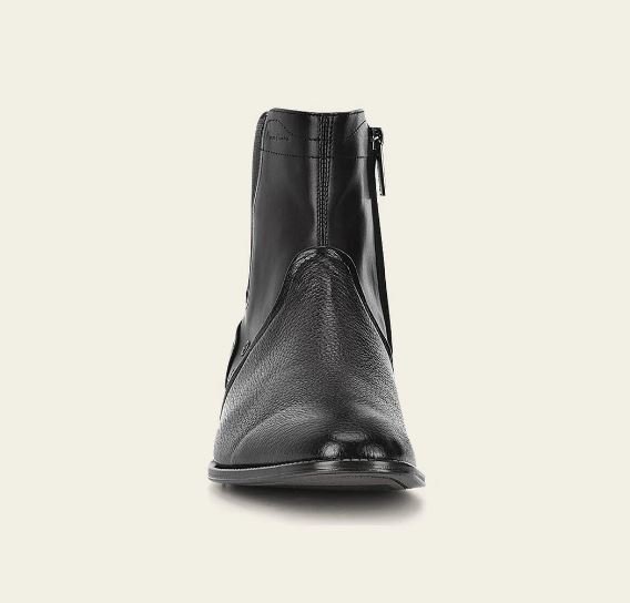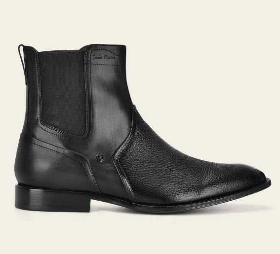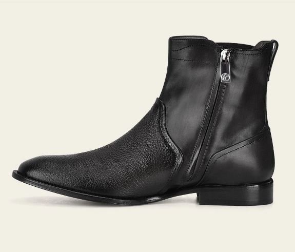 Men’s dress boot in genuine deerskin and cowhide. Features a metal Franco Cuadra monogram appliqué on the side. Fastens with an internal zipper. Leather sole with TPU insert.