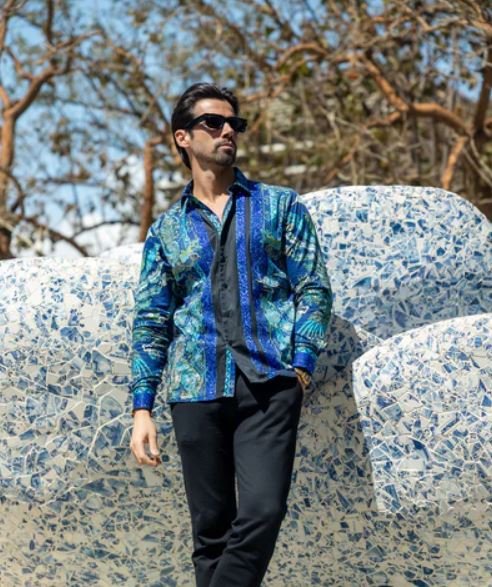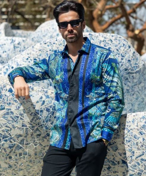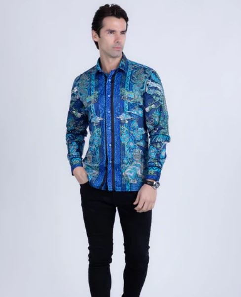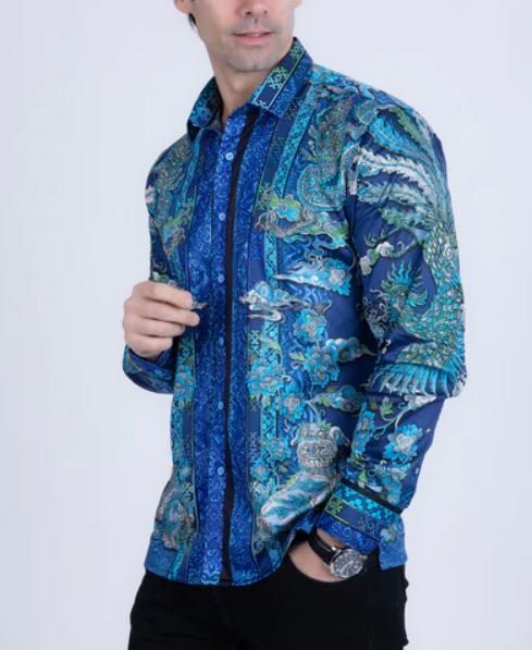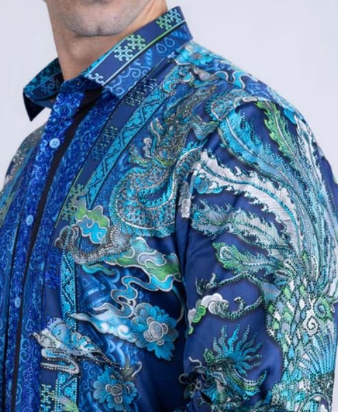Add a touch of elegance to your wardrobe with the Flitstitch men’s rhinestone Long Sleeve Shirt. This stunning shirt features a hand-placed rhinestone Baroque design, while its lightweight fabric provides a tailored fit. The floral and rooster pattern adds a distinctive and fashionable touch, making it truly unique. Designed by Barabas.