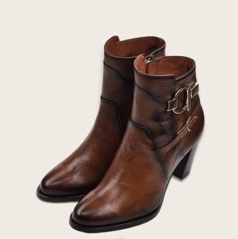 Adopt the unique design of these ankle boots, which showcase the natural texture of genuine deer leather, providing a soft and velvety feel.