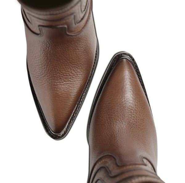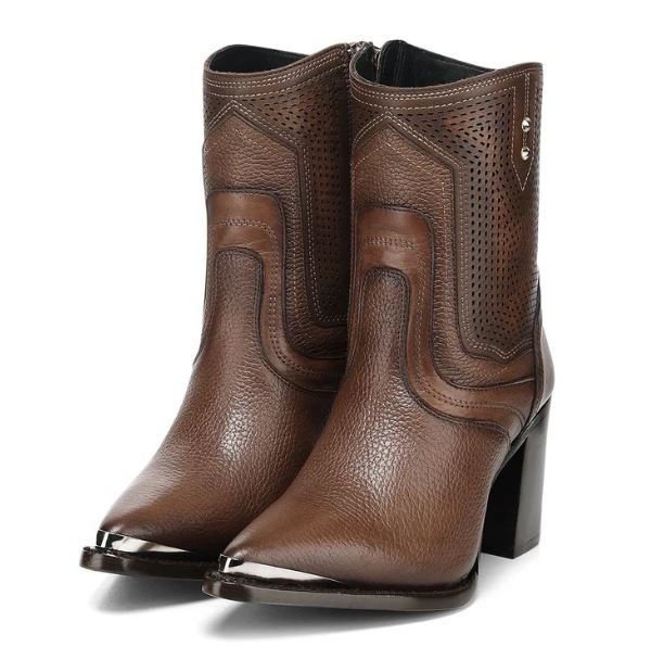 The boot features finely perforated decorative panels that enhance breathability while adding a unique handcrafted aesthetic. Its premium pebbled bovine leather provides durability, softness, and a timeless high-end finish that elevates any outfit.