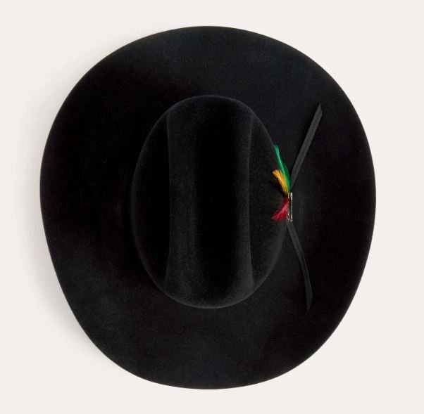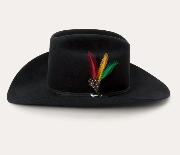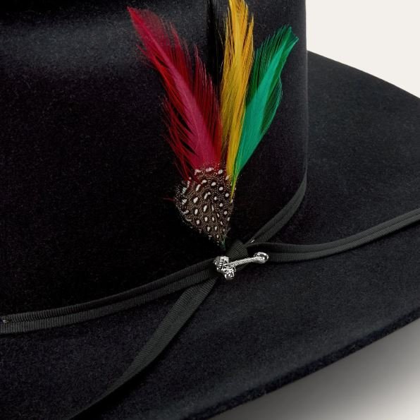 The classic Rancher remains one of our most enduringly popular western hats, famed for its iconic, retro-style profile. A favorite of working cowboys, country music stars, and wildcatting oilmen alike, it features a tall 5” cattleman crown and 4” heavy curved brim, complemented by a 2-ply cord hat band, removable feather detail and JBS branding iron pin—a nod to our trailblazing founder John B. Stetson. It’s crafted from our proprietary 6X quality fur felt blend, giving it a substantial feel designed to hold its shape come rain or shine, and, as with all hats that come out of our factory in Texas, each Rancher is touched by more than 100 sets of hands during production, resulting in a hat that is designed and built to stand the test of time. A handsewn genuine leather sweatband and full satin liner provide a time-tested fit and premium comfort.