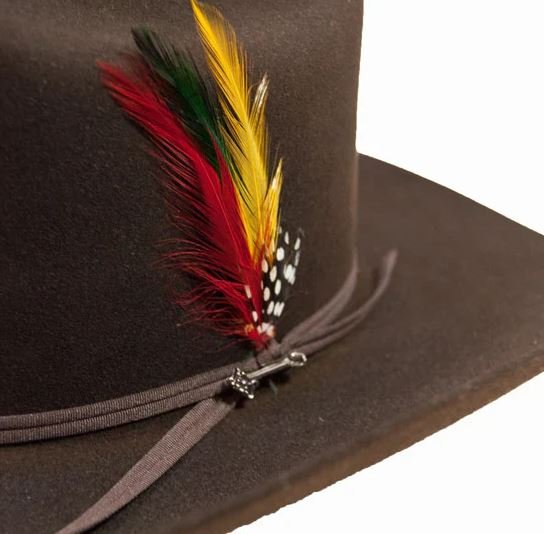 The classic Rancher remains one of our most enduringly popular western hats, famed for its iconic, retro-style profile. A favorite of working cowboys, country music stars, and wildcatting oilmen alike, it features a tall 5” cattleman crown and 4” heavy curved brim, complemented by a 2-ply cord hat band, removable feather detail and JBS branding iron pin—a nod to our trailblazing founder John B. Stetson. It’s crafted from our proprietary 6X quality fur felt blend, giving it a substantial feel designed to hold its shape come rain or shine, and, as with all hats that come out of our factory in Texas, each Rancher is touched by more than 100 sets of hands during production, resulting in a hat that is designed and built to stand the test of time. A handsewn genuine leather sweatband and full satin liner provide a time-tested fit and premium comfort.
