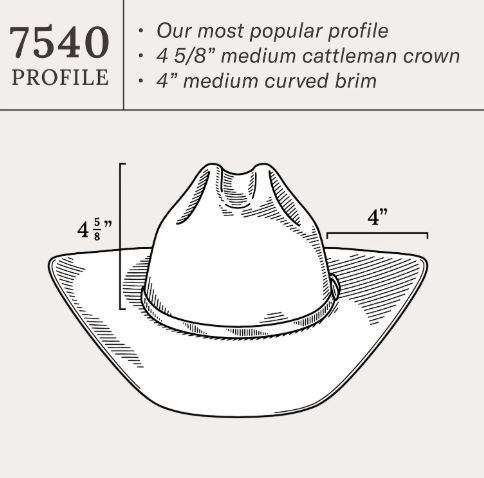 A true Stetson icon, our bestselling Skyline combines legendary quality and classic Western style in one timeless package. The Skyline is crafted from our proprietary 6X fur felt, which is prized for its durability and elegant feel, and, as with all hats that come out of our factory in Texas, each Skyline is touched by more than 100 sets of hands during production, resulting in a hat that is designed and built to stand the test of time. This edition features a 7540 profile, which translates to a 4 5/8” cattleman crown and 4” brim. Like all Skylines, it’s finished with a matching self-felt band and three-piece, silver-tone buckle. A handsewn genuine leather sweatband and full satin liner provide a time-tested fit and premium comfort.