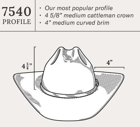 A true Stetson icon, our bestselling Skyline combines legendary quality and classic Western style in one timeless package. The Skyline is crafted from our proprietary 6X fur felt, which is prized for its durability and elegant feel, and, as with all hats that come out of our factory in Texas, each Skyline is touched by more than 100 sets of hands during production, resulting in a hat that is designed and built to stand the test of time. This edition features a 7540 profile, which translates to a 4 5/8” cattleman crown and 4” brim. Like all Skylines, it’s finished with a matching self-felt band and three-piece, silver-tone buckle. A handsewn genuine leather sweatband and full satin liner provide a time-tested fit and premium comfort.