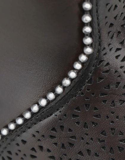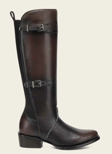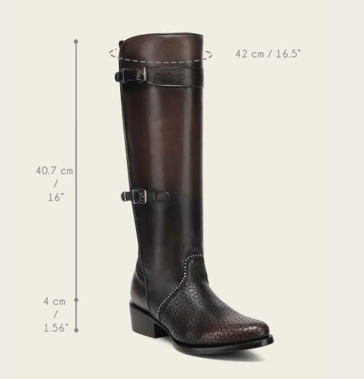 Elevate your equestrian-inspired style with this stunning tall women’s boot crafted from genuine bovine leather. Designed for elegance, durability, and all-day comfort, this boot showcases artisanal workmanship through its organic laser-cut patterns, hand-shaded finishes, and refined decorative accents.